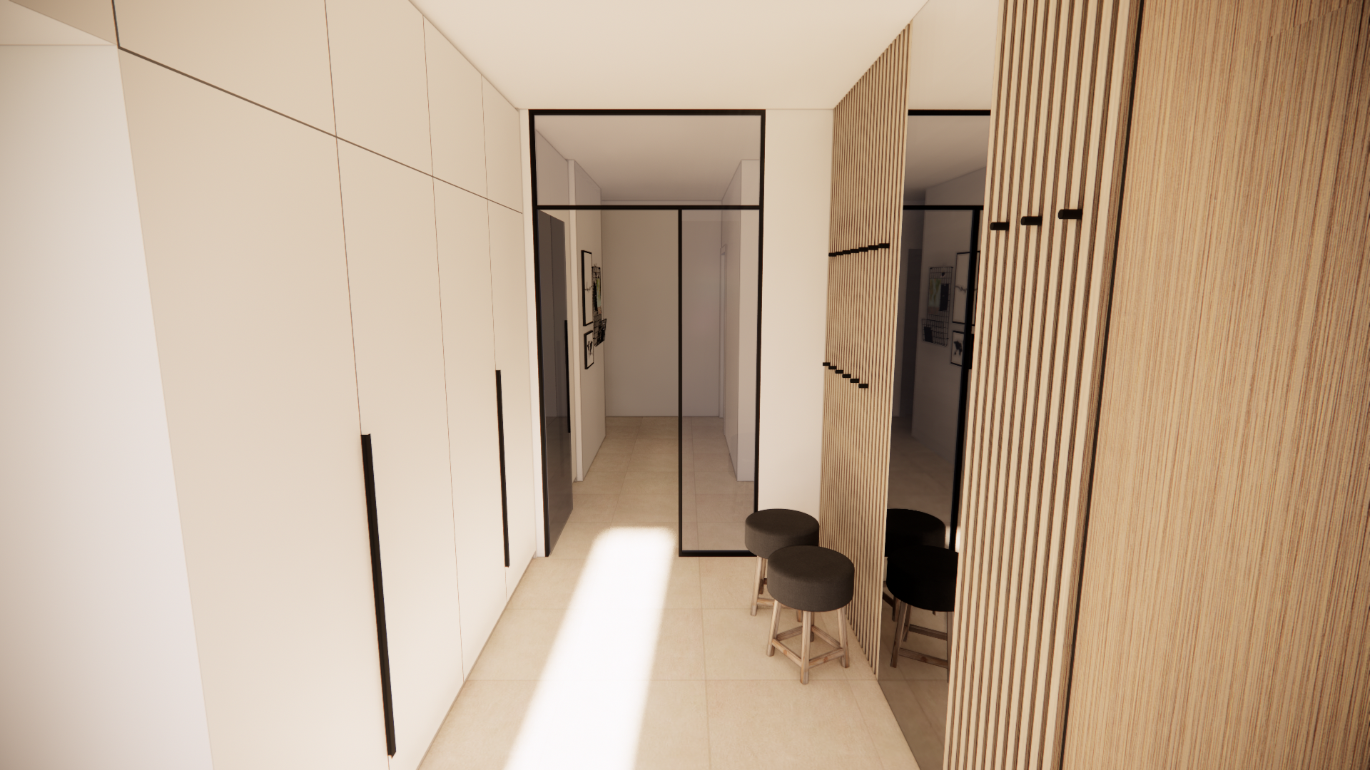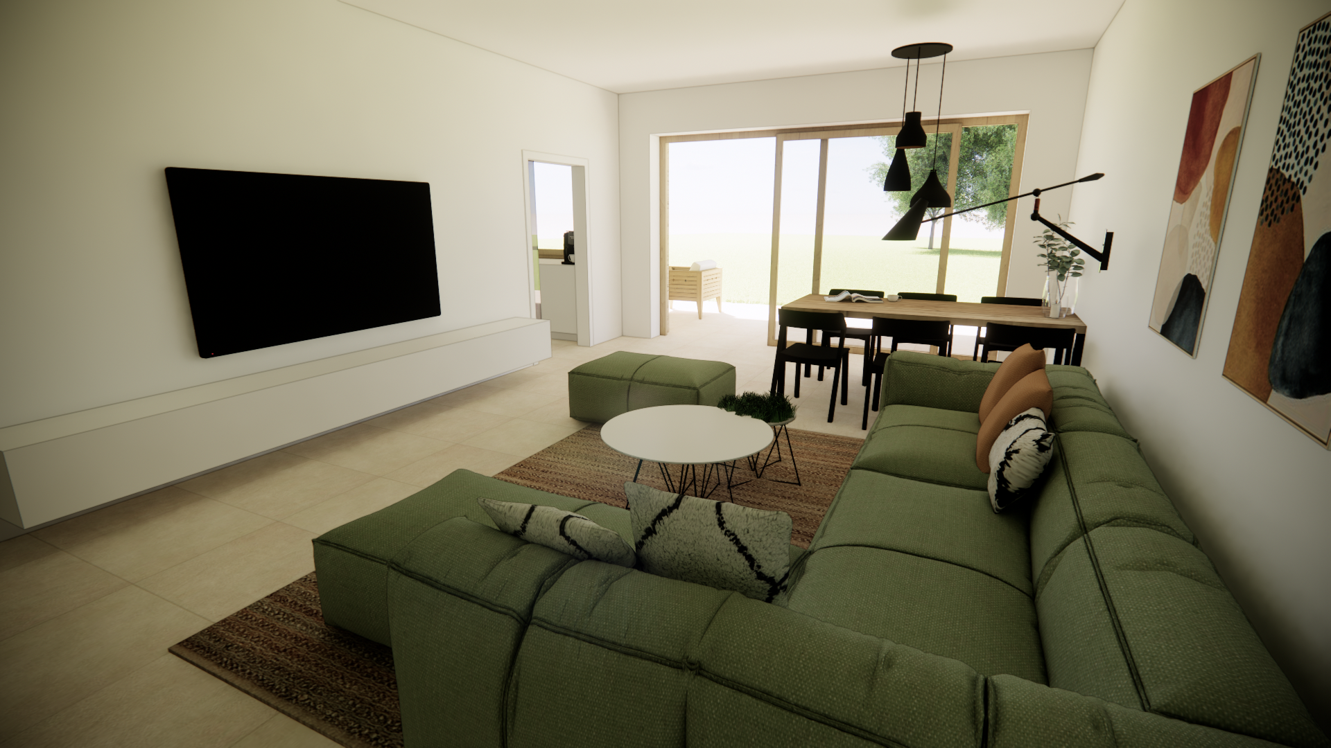 Hlavním tepelným zdrojem je tepelné čerpadlo vzduch‑voda s podlahovým vytápěním. O čerstvý vzduch se stará nucené větrání s rekuperací tepla. Letní tepelná pohoda je zabezpečena velmi komfortním systémem přichlazování.